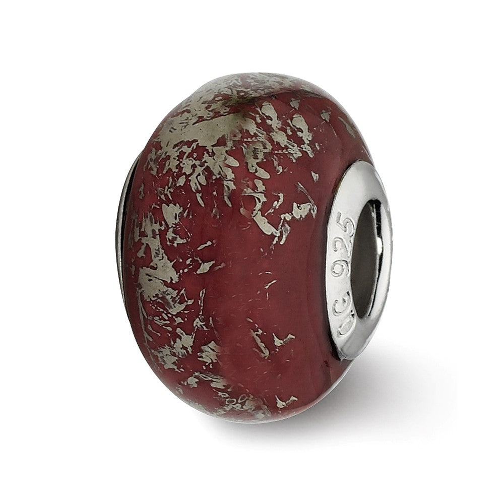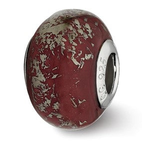 Dark Red w/Platinum Foil Ceramic Charm Bead in Sterling Silver