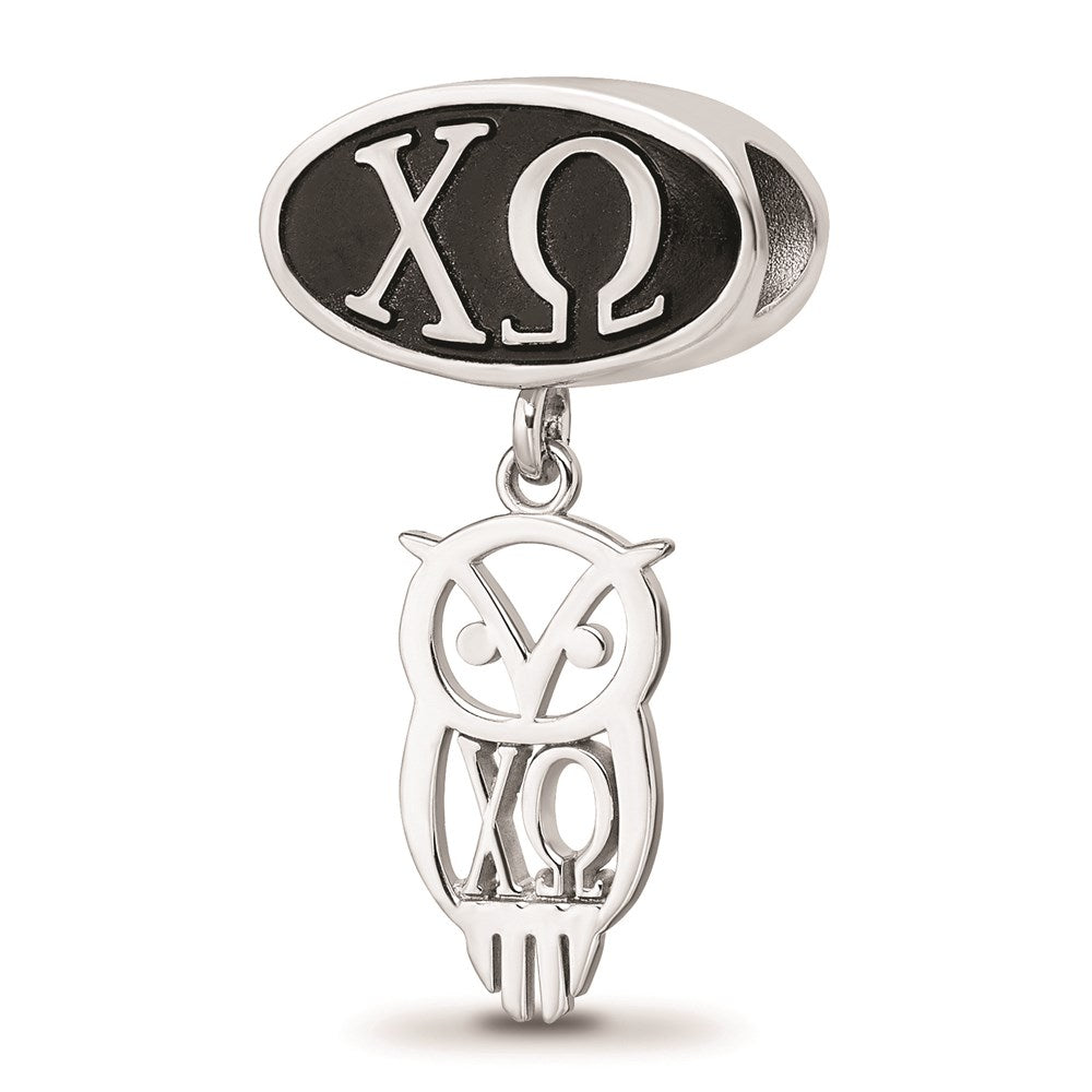 Chi Omega Oval With Owl Charm Dangle Bead in Sterling Silver