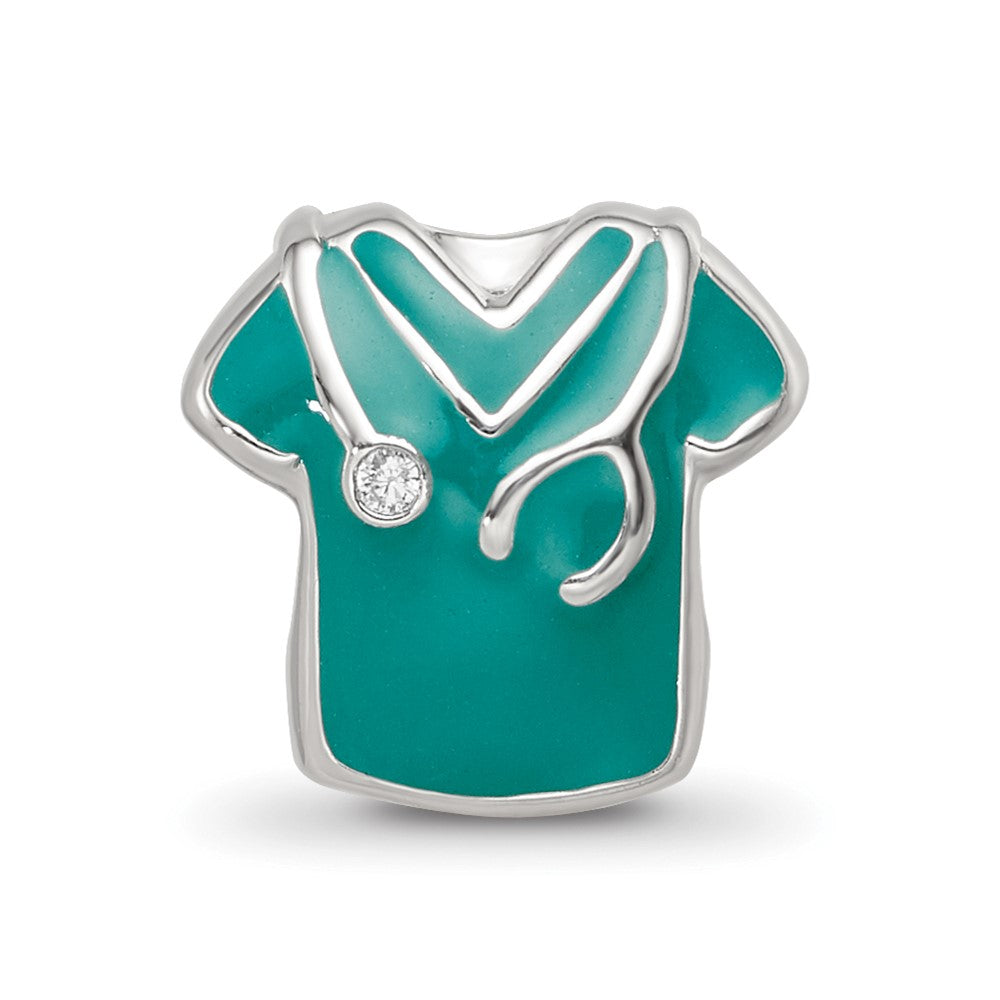 Crystals From Swarovski Enamel Nurse Scrubs Charm Bead in Sterling Silver